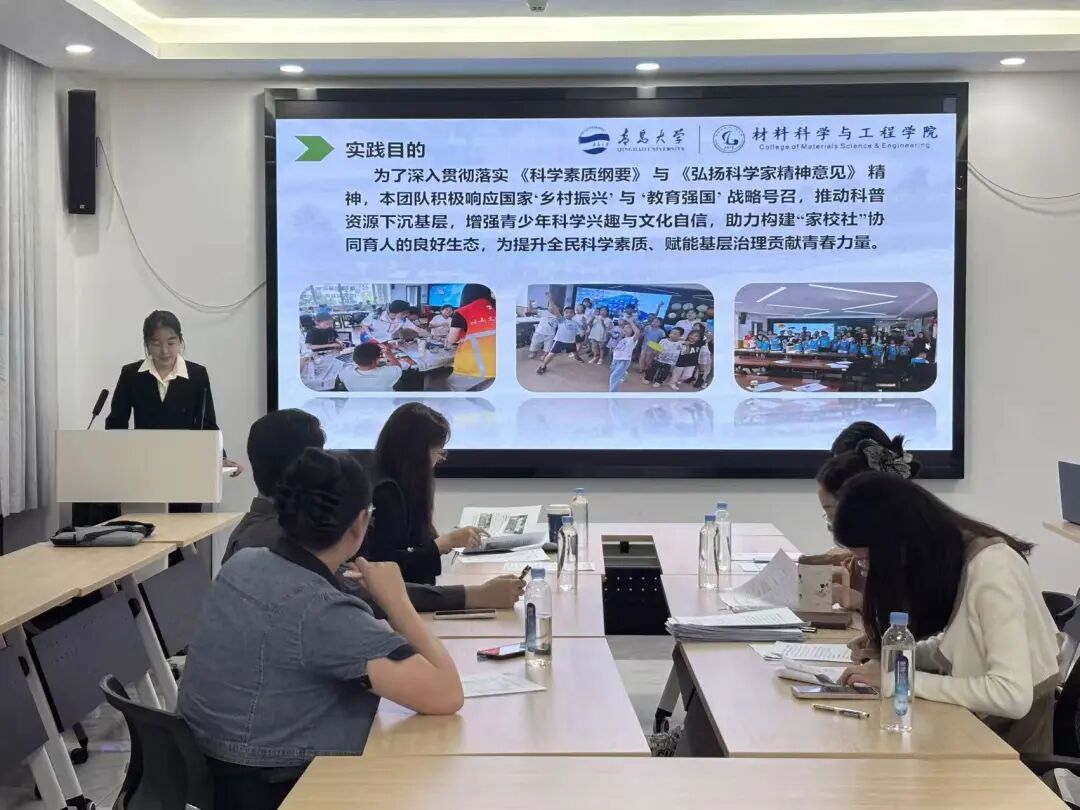 2025年9月24日下午6点,材料科学与工程学院在慎思楼308会议室举行2025年暑期“三下乡”社会实践答辩会。出席本次评审的老师有学院学工办主任林国红老师,院团委副书记王尊老师,辅导员吴洋洋,胡仪,宋淑婷,褚天扬老师。