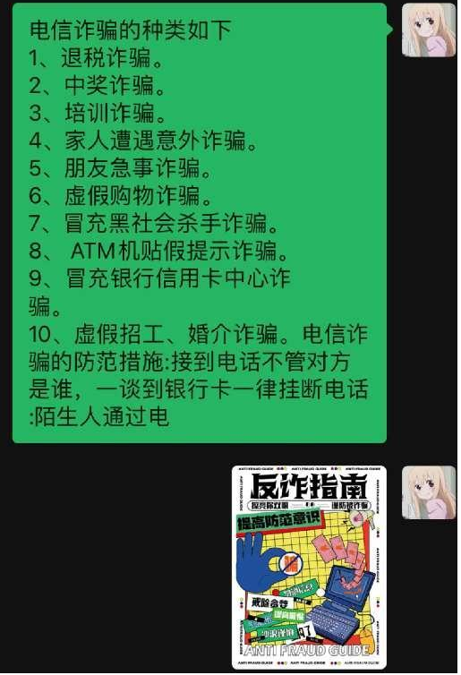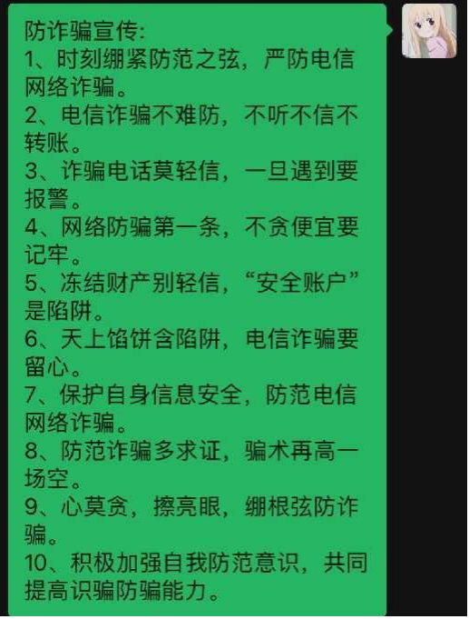 在这个网络横行贯通的时代,一些不法分子也随机展开了他们的陷阱,一份网络兼职、一次网络交友、一条短信链接等,这些都是不法分子设计的花样繁多的骗局而实施的电信网络诈骗,然而再高明的网络诈骗技术,也是利用人性的弱点,作为新时代的大学生,我们应该多了解诈骗犯罪的手法,呼吁人们下载安装国家反诈中心APP,关注国家发布的《中华人民共和国反电信网络诈骗法》,营造良好风气,引导全社会关注关爱触网较少的老人和涉世未深的年轻人,共同协力铲除犯罪土壤!——来自苏同学