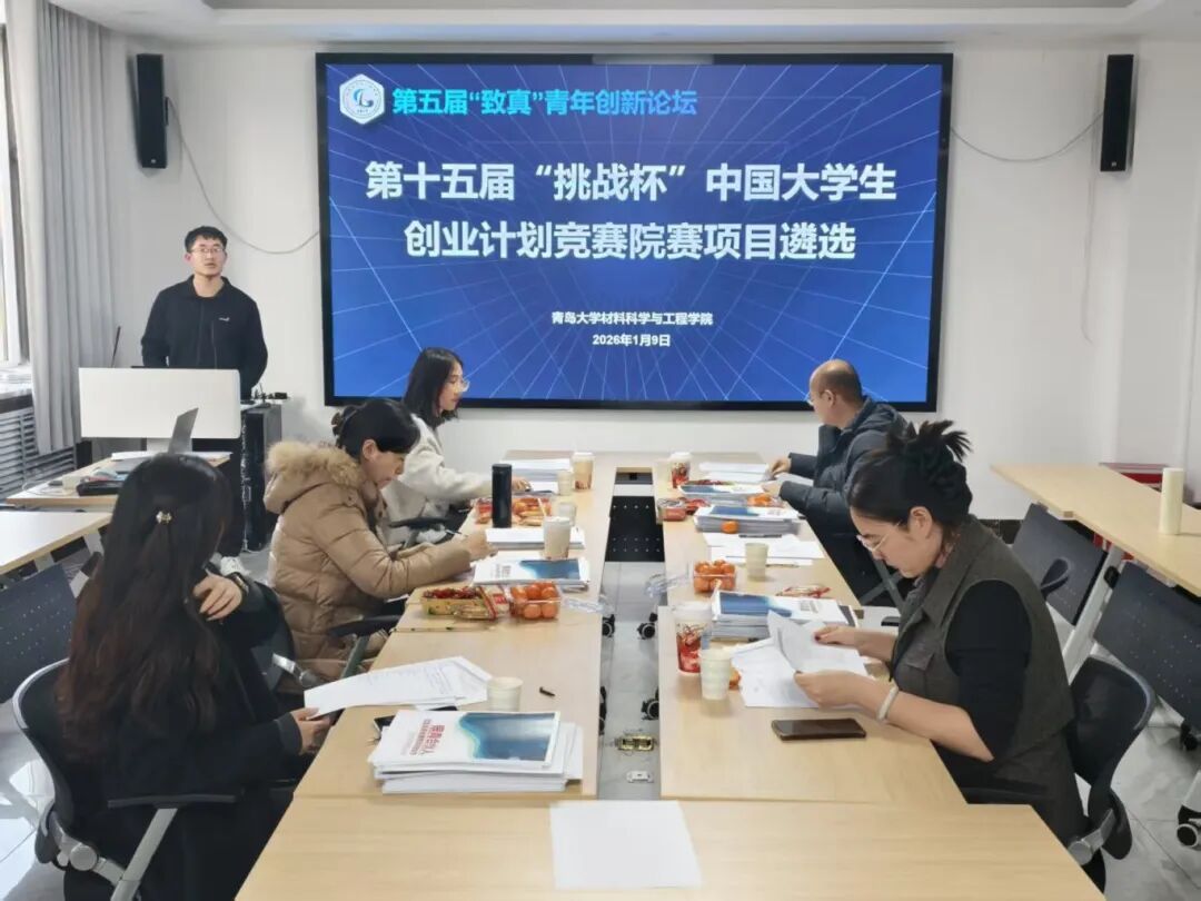 2026年1月9日,材料科学与工程学院第五届“致真”青年创新论坛暨第十五届“挑战杯”院赛项目遴选活动于慎思楼308会议室成功举办,学院党委副书记曹俊,院长助理解培涛,博士生导师龙晓静、张克伟,辅导员林国红、宋淑婷出席评审。