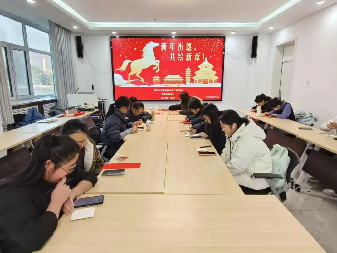 冬去春来,岁序更迭;辞旧迎新,开启新程。为迎接2026年元旦的来临,进一步增强青年学子的文化自信,为广大同学搭建一个表达美好祝福、展望光明未来的创意平台,1月3日下午,材料科学与工程学院本科生党支部(青年先锋学社)于慎思楼308会议室精心组织开展了“新年祈愿,共绘新章”主题党日活动。