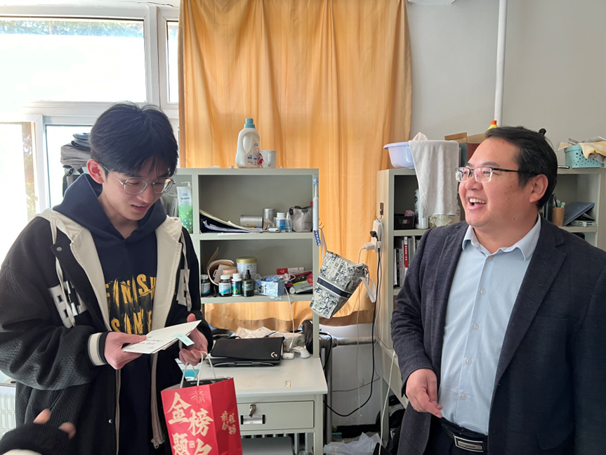 走访慰问期间,学院领导与老师们深入关切同学们的思想动态、学业进展与生活状况,细致询问复习进度、心理状态及备考过程中面临的难点与挑战,并积极协调资源、协助解决实际问题。张奎勤书记对同学们坚持不懈、奋勇争先的精神风貌给予高度肯定,激励大家始终保持积极向上的心态,坚定信念、相信自我,以饱满热情奋战至最后一刻。黄林军院长在走访中重点关切同学们的复习备考情况,叮嘱大家若遇到各类问题与困难,要及时与辅导员、专业课老师沟通对接,共同探寻解决路径,强调“学院始终是同学们最坚实的后盾”。此次暖心慰问活动,既为考研学子送上了精准的精神鼓励与实际支持,更是学院践行“以生为本”教育理念的生动实践与具体彰显。