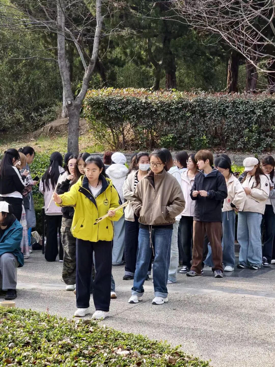 投壶游戏告一段落,花朝祈福环节,大家在彩纸上写下春日心愿,留下美好祝福,系在庭院中央大树的枝头,呼应“赏红护花”的传统习俗,让春日的美好与期许定格在校园里。这些心愿彩纸将由浮山书店妥善保管,为春日留下珍贵纪念。