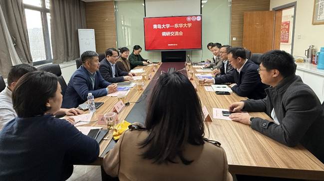 在东华大学调研期间,东华大学材料科学与工程学院党委书记李斌荣,院长廖耀祖,党委副书记景亮,副院长巨安奇、成艳华、王刚,工会主席于俊荣,先进纤维材料全国重点实验室陈丽芸和陈志刚副主任等领导参加座谈和调研。会议由李斌荣书记主持。成艳华副院长从产教融合、人才培养、创新平台规划、国际交流、科研团队建设、专业发展等方面对学院做了全面介绍,黄林军院长简要介绍了学院发展历程、学科专业布局、师资队伍建设、人才培养特色、产学研合作和服务社会等情况。随后双方围绕“十五五”规划编制、学科特色发展、研究生培养、专业认证、人才队伍建设、体制机制改革、社会服务等方面进行了深入交流。会后,调研组参观了先进纤维材料全国重点实验室和东华大学材料科学与工程国家级实验教学示范中心,学习了相关管理与教学经验。